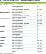 In den zwei Wochen vor und nach Ostern wurden nur wenige Bodenproben gezogen. Im gesamten Beprobungszeitraum der Kalenderwochen 13 bis 15 entfielen mehr als ein Drittel der Proben auf den Mais – die Maisaussaat in den tieferen Lagen hat begonnen.