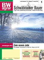 Woche für Woche wählen wir in der Redaktion aus drei bis fünf Vorschlägen das Titelbild für die aktuelle Ausgabe von BWagrar Landwirtschaftliches Wochenblatt und Schwäbischer Bauer. Mitunter dauert das auch mal länger, weil die Vorlieben der Kolleginnen und Kollegen auseinander gehen. Nach 51 Ausgaben im Jahr 2014 sind nun auch Sie wieder an der Reihe: Welches Titelbild hat Ihnen 2014 am besten gefallen? Und so machen Sie an der Abstimmung mit: Notieren Sie die Nummer der BWagrar-Ausgabe mit Ihrem Lieblingsbild auf dem Coupon auf Seite 13. Den Coupon schicken Sie uns, auf eine Postkarte geklebt, bis Dienstag, den 27. Januar 2015 , in die Redaktion: BWagrar, Stichwort Titelbild, Bopserstr. 17, 70180 Stuttgart . Oder Sie geben Ihre Stimme...