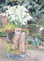 Material: 1 Büschel Schneeglöckchen aus dem Garten, Birkenhölzer, Glas, Moos Und so wird‘s gemacht: Hat man schon einige Pflanzen im Garten, kann man ruhig mal ein schönes Sträußchen für drinnen ernten. Einfach ein Bündelchen zusammennehmen und gemeinsam mit einigen Birkenhölzern in ein Glas stellen. Etwas Moos sorgt dann noch dafür, dass sie schön gerade stehen bleiben. Die Birkenhölzer greifen das Weiß der Schneeglöckchen noch einmal auf und steigern somit die natürliche Wirkung.