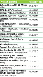 Das BVL hat die Zulassung von Pflanzenschutzmitteln verlängert. Diese Verlängerungen gelten bis auf Weiteres. Sie betreffen die in der Tabelle aufgeführten Mittel.