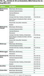 Auch zur zweiten Ausgabe des Nitratinformationsdienstes (NID) bleiben die Nitratgehalte auf einem außergewöhnlich hohen Niveau. Aus diesem Grund kann es vorkommen, dass auf Ihren NID-Attesten für die erste N-Gabe als auch für den Gesamtdüngebedarf derselbe Wert ausgewiesen wird. Wir empfehlen dann, den in diesem Fall relativ geringen N-Düngebedarf in einer Gabe auszubringen. Zu welchem Zeitpunkt die Ausbringung erfolgen soll, muss der jeweiligen Situation angepasst werden. Da in den oberen Schichten derzeit meist genügend verfügbarer Stickstoff vorhanden ist, können Sie auf eine Startgabe verzichten. Möchte man trotz hoher Nitratgehalte andüngen (zum Beispiel bei schlechter Vorwinterentwicklung), sollten maximal 40 kg N/ha ausgebracht...
