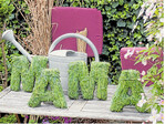 Material: Gräser Blumensteckmasse Buchstaben M und A aus Papier Heißklebepistole Und so wird es gemacht: 1.Die Buchstaben druckt man sich zuerst möglichst groß am Drucker aus, am besten in einer serifenfreien Schrift, also ohne Schnörkel. Gut geeignet ist zum Beispiel die Schriftart Arial black. 2.Halbieren Sie die Steckmasse und kleben Sie diese an den schmalen Längsseiten mit der Heißklebepistole zusammen (unten links). 3.Legen Sie die ausgeschnittenen Papierbuchstaben auf den Schwamm und ritzen Sie mit Bleistift die Konturen ein. Mit einem langen Messer können Sie die Buchstaben ausschneiden und schon ist die Unterlage fertig. 4.Jetzt werden die Grashalme kreuz und quer auf den Schwamm gelegt und mit Myrtendraht (feiner grüner Draht)...