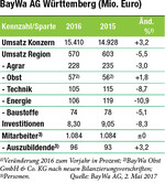 Die BayWa Württemberg erzielte 2016 mit 570 (Vorjahr: 603) Mio. Euro 5,5 Prozent weniger Umsatz. Gründe sind schwierige Märkte, witterungsbedingt geringe Ernte und teils niedrige Preise. Dennoch will das Unternehmen 14 Mio. Euro 2017 und 2018 in der Region investieren. Das erklärte Hermann Stöckeler, Leiter des Business Service Center (BSC) Württemberg, am Dienstag in Stuttgart (Konzernergebnis siehe BWagrar 14/2017, S. 63).