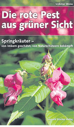 Von Imkern geschätzt, von Naturschützern bekämpft. So der Untertitel des aktuellen Buchs von Volkmar Weiss. Er beleuchtet zum einen die rasche Ausbreitung des Neophyten und die Verdrängung von heimischen Springkraut-Arten, zum anderen beschreibt er den Nutzen von Arten wie das Rote Springkraut, das Imker als Bienenweide zu schätzen gelernt haben. Das broschierte Buch ist mit zahlreichen Farbabbildungen klar gegliedert und stellt einzelne Springkraut-Arten vor. Volkmar Weiss: Die rote Pest aus grüner Sicht . Leopold Stocker Verlag, 2015, 160 Seiten, 19,90 Euro. ISBN 978-3-7020-1506-0.