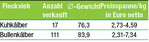 Auch an der Kälberauktion am 8. Juni machte sich das momentan geringe Kälberaufkommen bemerkbar, welches einer extremen Nachfrage gegenüber steht. Im Angebot befanden sich 17 Kuhkälber, darunter auch einige Gebrauchskreuzungen. Bei den Kuhkälbern kamen die Gebote von Beginn an flott. Das im Mittel 76 kg schwere weibliche Nutzkalb kostete gut 280 Euro pro Kopf beziehungsweise 3,69 Euro pro kg. Bei den männlichen Kälbern entwickelte sich ein flotter Verlauf. Die 111 verkauften Bullenkälber kamen im Schnitt auf 490 Euro pro Tier, was bei knapp 84 kg 6,02 Euro pro kg entspricht.