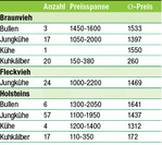 Ein guter Auftrieb herrschte auf der RBW-Auktion am 14. Juni in Waldsee. Braunvieh: Hochwertig zeigten sich die Zuchtbullen. Körsieger wurde ein Huvi-Sohn aus einer Huray-Bullenmutter. Gezüchtet und vorgestellt wurde er von der Familie Heckenberger, Hochdorf. Aus dem gleichen Betrieb kam ein Hupays-Sohn von einer Etvei-Mutter. Die Jungkühe boten viel Milch und gutes Exterieur. Eine fehlerfreie Vassli-Tochter verkaufte der Betrieb Georg Heine, Bad Wurzach, zum Tageshöchstpreis von 2000 Euro. Begehrt war auch eine Huxfull-Tochter vom Betrieb Gebhard Heim, Tettnang, für 1850 Euro. Sehr gefragt waren die Zuchtkälber. Fleckvieh: Kein Interessent fand sich für den angebotenen Zuchtbullen. Die gefragteste Jungkuh, eine Manton-Tochter, kam aus...