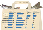 Wo kaufen die Deutschen ihren Fisch? Die größte Menge an Fisch und Meeresfrüchten setzten im Jahr 2012 wieder die Discounter um (50 Prozent). Auf die Super- und Verbrauchermärkte (inklusive Frischfischtheken) entfielen 36 Prozent und auf die Fischfachgeschäfte sechs Prozent. Mehr Infos und nützliche Verbraucherinfos bietet das Fisch Informationszent- rum unter: www.fisch-info.de | Foto: FIZ