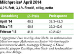 Im April haben die meisten Molkereien in Baden-Württemberg ihre Auszahlungspreise gesenkt, einige konnten sie aber auch halten. Blieb der Preis noch im März im Mittel bei 40,9 Cent pro kg relativ stabil (-0,1 Cent) gegenüber dem Vormonat, ging er jetzt im April auf durchschnittlich 40,2 Cent pro kg zurück (-0,7 Cent). Die Preisspanne erweitert sich auf vier Cent. Insgesamt trübt sich die gute Stimmung am Milchmarkt ein wenig ein. So mancher Verarbeiter, der seine Kapazitäten wegen der starken Anlieferung voll ausgelastet hat, bekommt Probleme im Verkauf. Gleichwohl sind die Märkte insgesamt auf Wachstumskurs. Die Nachfrage nach Milchprodukten steigt weltweit. Doch ein starker Euro zum einen und Handelsbeschränkungen wie mit Russland zum...
