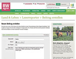 Liebe Leserinnen und Leser, Ihr Blick aufs Land ist gefragt. Werden Sie BWagrar-Leserreporter und berichten Sie mit Text und Bild von Veranstaltungen in Ihrer Region. Es geht ganz einfach: Gehen Sie ins Internet auf www.bwagrar.de. Unter der Rubrik Land&Leben finden Sie die Leserreporter. Ein Mausklick auf den rechten Button und Sie haben die Möglichkeit, in wenigen Zeilen Ihre Veranstaltung zu beschreiben. Anschließend laden Sie noch die Bilder hoch – fertig! So können Sie alle am Hoffest, der Zuchtschau oder dem Landjugendfest teilhaben lassen und bekommen gleichzeitig eine Plattform, wo jeder die Bilder kinderleicht anschauen und durchklicken kann. Probieren Sie es aus!