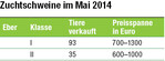Stabile Preisverhältnisse bei der Vermarktung von Schlachtschweinen und eine leicht gesunkene Ferkel-Nachfrage kennzeichneten die Lage im Mai. Ähnlich entwickelte sich der Ebermarkt. Die sehr gute Exportnachfrage glick die Zurückhaltung der Besamungsstationen aus: Die Verkaufszahlen der Eberzüchter in Baden-Württemberg blieben stabil. Mit 128 verkauften Tieren wurde das Vorjahresniveau übertroffen. Mit rund 850 Euro gab der Durchschnittspreis aber etwas nach. Über die Hälfte der Tiere wurden außerhalb von Baden-Württemberg verkauft. Im Mai standen 93 Jungeber in Klasse I. Im kleinen Angebot der Deutschen Landrasse erzielten Klaus und Philipp Benz GbR in Bingen die Bestnote. Ein Sohn von Calzone präsentierte sich mit guter Länge, korrektem...
