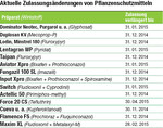Das Bundesamt für Verbraucherschutz und Lebensmittelsicherheit hat die Zulassung von Pflanzenschutzmitteln, deren Zulassung durch Zeitablauf endete, verlängert. Diese Zulassungsverlängerungen werden bis zur endgültigen Entscheidung über eine erneute Zulassung erteilt. Die für den Ackerbau und Sonderkulturen bedeutsamen Mittel sind in der Tabelle zusammengestellt.