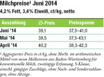 Milchpreis im Juni im Schnitt um 0,4 Cent weiter gefallen