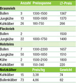 Der Markt am 13. August war gut besucht, alle Gattungen wurden flott verkauft. Braunvieh: Körsieger der Bullen war ein Prossli-Sohn von Konrad Gaum, Schönenburg. Teuerster Bulle war der Reservesieger, ein Volvo-Sohn. Er erlöste 1500 Euro. Eine Emjak-Tochter aus dem Betrieb Kling, Murrwangen erreichte als Tageshöchstpreis 1800 Euro. Ihr folgten eine Payssli-Tochter von Josef Bentele, Grünkraut für 1600 Euro sowie von Hermann Miller, Gutenzell eine Jubev-Tochter. Herausragend war ein Zuchtkalb von Karl Baisch, Warthausen das 750 Euro erlöste. Fleckvieh: Körsieger war ein Salmander-Sohn von Hubert Schönenberger, Stockach-Windegg. Eine Vanel-Tochter von Longinus Lang, Kleintobel erlöste 1750 Euro. Den selben Preis erreichte eine...