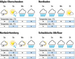 Nach einer eher frühherbstlichen Woche mit einigen kräftigen Regenfällen wird das Wetter nun herbstlicher, aber weiterhin ohne Fröste. Am Samstag und Sonntag gibt es immer wieder Schauer, in Hochlagen anfangs auch Gewitter und die Temperaturen erreichen im Rheintal nur noch 22°C, auf der Alb bis 15°C. Am Montag zieht ein Regengebiet von Westen heran, und die Temperaturen bleiben unter 20°C. Am Dienstag lösen sich die Nebelfelder nur langsam auf und es werden bis 17°C erreicht, auf der Alb nachts etwa 5°C und tags bis 15°C. Ab Mittwoch bilden sich vermehrt wieder Nebelfelder in den Tallagen bei Tiefsttemperaturen meist über 5°C und Tageshöchstwerten zwischen 13 und 18°C. Gegen Ende der Woche sinken die Temperaturen etwas. Durch die...
