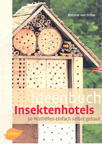 Der Garten ist ein Lebensraum für zahlreiche Insekten. Manche Insekten zählen wir zu den Nützlingen, andere sollten zum Erhalt der biologischen Vielfalt geduldet werden. Die Autorin gibt mit dem Ideenbuch für Insektenhotels wertvolle Tipps zum Bau. Informationen zu Nistgewohnheiten bieten die Grundlage für die richtige „Hoteleinrichtung". Zudem erhält der Leser Hinweise zu Bauzeit und Baumaterialien. Melanie von Orlow: Ideenbuch Insektenhotels . Verlag Eugen Ulmer, Stuttgart, 2013, 96 Seiten, 14,90 Euro, ISBN 978-3-8001-7878-0. |