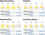 Eine weiterhin milde Woche mit etwas überdurchschnittlichen Temperaturen und etwas Regen in der Wochenmitte endet mit etwas wärmerer Witterung und Temperaturen bis 20 °C. In der Woche ab 2. November wird das Wetter herbstlicher, und es gibt gebietsweise Bodenfrost. Am Samstag und Sonntag scheint nach Auflösung von Frühnebelfeldern bei Südwind verbreitet die Sonne und die Temperaturen erreichen im Rhein- und Neckartal knapp 20 °C, auf der Alb bis 15 °C. Am Montag werden nochmals bis 20 °C erreicht, dann ziehen von Westen Wolken auf und es kommt wiederholt zu Regenfällen bei Temperaturen meist zwischen 5 und 15 °C. Ab Donnerstag stellt sich zunehmend Hochdruck ein, nachts mit Nebelbildung und gebietsweise Bodenfrost, tags vor allem in...