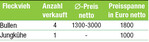 V ier Bullen und eine Jungkuh wechselten den Besitzer. Sieben Bullen und eine Jungkuh blieben im Überstand. Es gab mit Giras einen Testbullen. Das ist der dritte Sohn des Zweiteinsatzbullen Gipada. Giras ist rahmig und frohwüchsig und 14 Monate alt. Er ging zum Garantiepreis von 3000 Euro netto an die RBW nach Herbertingen. Zweitplatziert war der Bulle Giraldo, ein weiterer Gipada-Sohn. Stefan Weiss aus Schönwald bot den geprüften Bullen an, Otmar Klausmann aus St. Georgen-Oberkirnach ersteigerte ihn für 1500 Euro netto. Zwei ansprechende Jungkühe, beide von Christian Kaiser aus Görwihl, waren im Angebot. Eine davon wurde verkauft.