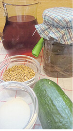 Schlangengurken Zwiebelscheiben 1 EL Senfkörner 3/8 l Wasser 1/8 l Essig 2 EL Salz ½ EL Zucker
