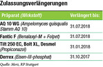 Das BVL hat die Zulassung von Pflanzenschutzmitteln, deren Zulassung durch Zeitablauf endete, verlängert. Diese Zulassungsverlängerungen werden bis zur endgültigen Entscheidung über eine erneute Zulassung erteilt.