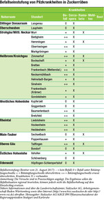 Auf 20 von 28 Monitoringschlägen im Einzugsgebiet der Zuckerfabrik Offenau wurde die Schadschwelle überschritten. Diese liegt seit 15. August bei 45 Prozent befallener Blätter. Im Kerngebiet sind meist bereits zwei Behandlungen durchgeführt worden, in den Regionen mit normalerweise geringerem Befallsdruck meist eine Behandlung. Da diese in der Regel schon mehr als zwei Wochen zurückliegen, muss über eine weitere Behandlung nachgedacht werden. Dabei muss die Wartezeit sicher eingehalten werden können. Ausschlaggebend hierfür ist der Rode- und nicht der Ablieferungstermin. Da die feuchte Witterung in Baden-Württemberg einen deutlich überdurchschnittlichen Rübenertrag bescheren wird, muss ein früher Kampagnebeginn berücksichtigt werden....