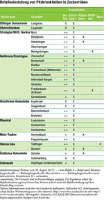 Nicht selten sind dieses Jahr drei bis vier Behandlungen erforderlich. Dies variiert jedoch stark, es gibt auch sehr gesunde Rübenschläge, diese kommen dieses Jahr mit wenigen Behandlungen aus. Die aktuelle Schadschwelle von 45 Prozent wurde mittlerweile bei einigen weiteren Monitoringschlägen überschritten. Dies bedeutet nach wie vor Wachsamkeit, um die Rübenbestände, die für die zweite Runde eingeteilt sind, gesund zu erhalten. Flächen tauschen Die von Hagel teilweise stark beschädigten Rübenbestände im näheren Umkreis von Offenau bis Neuenstadt sind differenziert zu betrachten. Bei Beständen mit fast vollständigem Blattverlust ist mit wenig bis keinem Neuaustrieb zu rechnen. Falls diese nicht in Runde 1 eingeteilt sind, sollte geprüft...