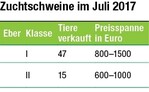 Trotz des nur leichten Preisdrucks bei Schlachtschweinen und Ferkeln ging es beim Verkauf von Zuchtebern im Juli eher zu ruhig zu. Die Exportnachfrage war wetter- und erntebedingt zurückhaltend. Aufträge kamen aus der Ferkelerzeugung und von Besamungsstationen. Bestellungen für den Export liegen schon vor.Von den knapp über 60 in Baden-Württemberg verkauften Ebern war die Mehrzahl in Klasse I bewertet. Der Durchschnittspreis lag bei rund 1000 Euro. Bei der Deutschen Landrasse kamen die Spitzeneber von Tobias Peter in Aach-Linz und Klaus und Philipp Benz in Bingen. Sie zeigten sehr gute Länge, gewünschte Zitzenauspägung und ein stabiles Fundament. Die Söhne von Sonders, Logano und Bolero gingen zumeist auf die Besamung. Bei der Rasse...