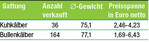 Die Auktion am 7. September wartete mit einem sehr umfangreichen Angebot auf. Aufgetrieben waren 36 Kuhkälber. Pro Kopf mussten im Schnitt 238 Euro oder 3,18 Euro je kg angelegt werden. Umfangreich war mit 164 Tieren auch der Auftrieb bei den Bullenkälbern. Mit 77 kg Gewicht war die Kollektion relativ leicht. Die Kälber konnten um 5,68 Euro je kg zugeschlagen werden, was 438 Euro pro Tier entspricht.