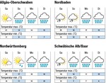 Der Samstag beginnt meist klar, dann zieht zunehmend Bewölkung auf, die Temperaturen steigen auf 25 °C im nördlichen Rheintal, 22 °C am Bodensee und 18 °C auf der Alb. Am Abend setzen von Südwesten her teils gewittrige Schauer ein, die bis Sonntagvormittag anhalten und die Temperaturen fallen rasch. Am Sonntag lassen die Schauer von Westen her nach, die Temperaturen erreichen noch 16 °C im nördlichen Rheintal, im mittleren Neckarraum, 14 °C am Bodensee und 10 °C auf der Alb. Am Montag bringt frischer Wind aus Südwesten erneut Niederschläge, bei maximal 16 °C in den Ebenen und 10 °C auf der Alb. Der Dienstag wird wechselhaft und kühler. In Hochlagen gibt es vereinzelt Schneeschauer. Die Folgetage werden kühl und trocken. | →Das...