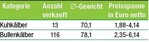 Auf dem Markt am 5. Oktober in Herrenberg konnten insgesamt 129 Tiere angeboten und verkauft werden, 13 Kuhkälber und 116 Bullenkälber. Die 13 angebotenen Kuhkälber gaben bei moderater Nachfrage mit 3,06 Euro pro kg gegenüber dem Vormonat leicht nach, wobei gut entwickelte Kälber weiter über 3,50 Euro erlösen konnten. Das Durchschnittsgewicht betrug gut 70 Kilo. Die Kollektion der Bullenkälber zeigte sich einer normalen bis guten Nachfrage gegenüber. Der gemittelte Preis konnte im Vergleich zum Vormonat nahezu identisch bei 5,50 Euro je kg gehalten werden, was pro Kopf 429 Euro entspricht. Bedarf an hochwertigen Kälbern besteht weiterhin, wenn auch nicht mehr um jeden Preis. Das Gewicht betrug im Mittel 78 kg.
