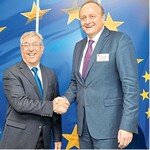 Der Präsident des europäischen und Deutschen Bauernverbandes, Joachim Rukwied (rechts), tauschte sich vergangene Woche in Brüssel mit EU-Umweltkommissar Karmenu Vella über die zukünftige europäische Agrarpolitik sowie deren Verknüpfung mit der Umwelt- und Klimapolitik aus.