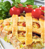 Für den Teig: 150 g Mehl, 80 g kalte Butter, 1 Ei, Salz Für den Belag: 2 Stangen Lauch, 1 EL Butter, 150 g Räucherlachs, 150 g Räuchermakrelenfilets, 2 Eier, 100 g Crème fraîche, 100 ml Sahne Pfeffer, Muskat, 1 Eigelb, 2 EL Milch