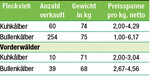 Am 4. Januar startete die RBW in Donaueschingen mit 364 Kälber erfolgreich ins Jahr 2018. Bei guter Nachfrage legten die Preise zu. Die Vorderwälder-Kuhkälber erzielten bei 71 kg Gewicht 176 Euro je Kalb. Die 60 Fleckvieh-Kuhkälber lockten zahlreiche Aufzüchter an. Der Preis lag bei 3,47 Euro/kg und 255 Euro je Kalb. Die 39 Vorderwälder-Bullenkälber konnten die Nachfrage nicht decken. Je Kalb mit 68 kg wurde 246 Euro angelegt (3,60 Euro/kg). Die Fleckvieh-Bullenkälber kamen auf 407 Euro bei 75 kg Gewicht (5,44 Euro/kg).