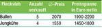 Bei der Großvieh-Versteigerung der RBW am 4. Januar wurden sechs Bullen und vier Jungkühe angeboten. Die Qualität war insgesamt gut. D ie fünf verkauften Jungbullen kamen auf einen guten Durchschnittspreis von 2070 Euro. Den Spitzenpreis erzielte der Körsieger ein gut entwickelter Windstone-Sohn, vorgestellt von Alfred Berger aus Herbertingen-Mieterkingen. Er kam auf 2200 Euro. Ihm folgte ein schöner Hubraum-Sohn von Thomas Burger aus Biederbach mit 2100 Euro. D ie vier Jungkühe wurden flott verkauft bei einem Durchschnittspreis von 1550 Euro. Am höchsten gesteigert wurde eine elegante Hutera-Tochter aus dem Betrieb Winterhalder GbR aus VS- T annheim. Sie wechselte für 1800 Euro den Besitzer.