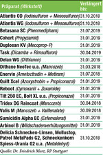 Das Bundesamt für Verbraucherschutz und Lebensmittelsicherheit (BVL) hat die Zulassung von Pflanzenschutzmitteln, deren Zulassung durch Zeitablauf endete, verlängert. Diese Zulassungsverlängerungen werden bis zur endgültigen Entscheidung über eine erneute Zulassung erteilt.