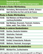 Beim Markt des Fleischrinderverbandes Bayern e.V und der Rinderunion Baden-Württemberg e.V. am 19. und 20. Januar wurden Bullen und Jungrinder von sechs Rassen versteigert. Insgesamt wurden 98 Tiere aufgetrieben, 94 Jungbullen und vier Elite-Jungrinder. Der Marktverlauf war sehr erfreulich. Besonders rege war die Nachfrage nach Angus und Limousin. Eingestimmt auf die Auktion wurden die Besucher mit der Vorstellung der Siegerbullen (Sieger, Reservesieger, Bemuskelungssieger) der Rassen Angus, Charolais, Fleckvieh-Simmental, Hereford, Limousin, und Pinzgauer. Die Extensivrassen Galloway und Zwergzebu wurden in der sogenannten „Stillen Auktion" angeboten. Angus: Aufgetrieben wurden 38 Bullen, davon neun Aberdeen Angus. Körsieger wurde der...