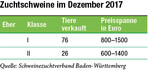 D e r Schweinemarkt zeigte sich im Dezember weiterhin nicht zufriedenstellend mit weiter schwachen Ferkelpreisen. Dagegen lief die Jungeber-Vermarktung der badenwürttembergischen Zuchtbetriebe ordentlich. Eine beständige Nachfrage seitens der Ferkelerzeugung, Besamung und vor allem beim Export sorgte für einen Absatz von knapp über 100 Tieren aus einem hervorragenden Angebot. Etwa 45 Jungeber gingen ins Ausland nach Spanien, Belgien und Ungarn. Der Durchschnittspreis belief sich auf 1050 Euro. Die kompletten Verkäufe des Jahres 2017, knapp 800 Eber aus den Betrieben in Baden-Württemberg, gingen etwas zurück. Insgesamt setzte die Eberzucht und Vermarktung des Verbandes unter dem Namen German Genetic etwa 2300 Eber der Deutschen Landrasse,...