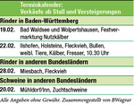 Demeter Baden-Württemberg: Mit ihrem neuen Logo „Demeter MilchBauern Süd w.V." wollen 25 Demeter-Landwirte aus Süddeutschland für ihre Käufer transparent machen, wer hinter dem Rohstoff Heu- und Hornmilch steht. Info: www.dm-sued.de Biofach: Zur Weltleitmesse für Bio-Lebensmittel treffen sich kommende Woche vom 14. bis 17. Februar mehr als 2950 Aussteller und über 50.000 Besucher in Nürnberg. Dort wird gezeigt, was die biologische Landwirtschaft zu bieten hat. Mehr unter www.biofach.de.