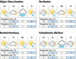 Der Samstag beginnt frostfrei, Wolken und Regenschauer wechseln mit sonnigen Abschnitten ab bei 16°C im Rheintal sowie im mittleren Neckarraum und 10°C auf der Alb. Dann klart es zeitweise auf und der Wind dreht auf Süd. Am Sonntag dreht der mäßig-böige Wind im Tagesverlauf auf West. Die Wolken wechseln mit sonnigen Abschnitten bei 15°C im Rheintal sowie im mittleren Neckarraum und 11°C auf der Alb. Am Nachmittag bringen dichtere Wolken erneut Regenschauer, vereinzelt vor allem im Westen Gewitter. Am Montag bringt böigfrischer Wind aus Westen gebietsweise weitere Schauer. Die Temperaturen erreichen bis 13°C im Rheintal und 6°C auf der Alb, später klart es auf. Am Dienstag gibt es in Hochlagen Nachtfrost, tags ziehen weitere Schauer...