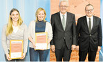 Von Ministerpräsident Winfried Kretschmann und Präsident Dr. Roman Glaser erhielten Lea Sauter und Maren Müller den zweiten Preis beim Studierendenwettbewerb 2018 beim Zukunftsforum Genossenschaft in Stuttgart. Im Jubiläumsjahr „200 Jahre Raiffeisen" ist der BWGV-Studierenden-Wettbewerb ins Leben gerufen worden. Die beiden Studentinnen an der Universität Hohenheim erhielten für ihr Poster „Megatrend-Digitalisierung in der Landwirtschaft am Beispiel der Milchviehhaltung" einen Geldpreis von 300 Euro. Maren Müller (rechts) aus Wangen im Landkreis Göppingen ist seit dem vorigen Jahr Ortsvorsitzende der Landfrauen Wangen im Team mit Karolin Eisele.