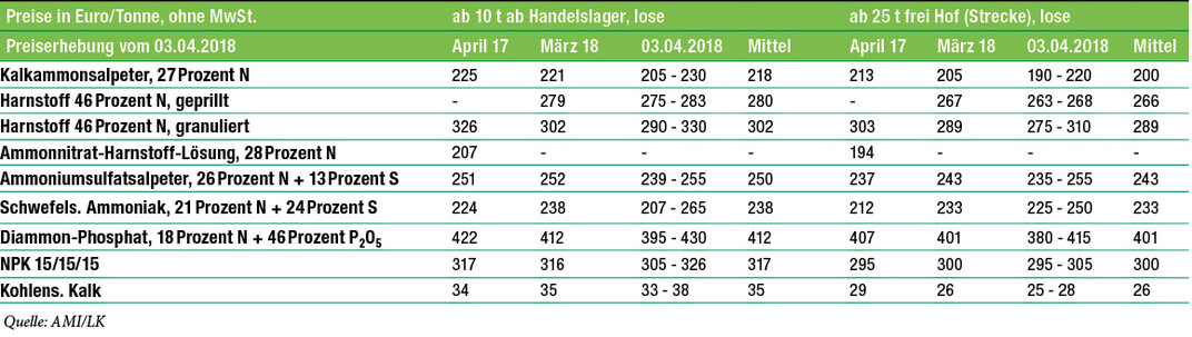 Einkaufspreise der Landwirte für Düngemittel in Süddeutschlandt