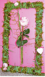 Material: Alter Bilderrahmen ohne Glas, Aludraht, Reagenzglas, Moos und Gräser, Wickeldraht, eine Rose oder die Lieblingsblume Und so wird es gemacht: Vielleicht hat der eine oder andere noch einen alten Bilderrahmen, der nicht mehr passt oder gefällt? Kein Problem, der kann zu neuem Leben erweckt werden und am Muttertag eine große Freude bereiten. 1. Hierfür werden Moos und Gräser mit dünnem Bindedraht um den Rahmen gewickelt. Die Vorgehensweise ist dabei ganz ähnlich dem Binden eines Kranzes. Nur werden hier das Moos flach angelegt und die Grasstiele eingebunden. Dabei sollte darauf geachtet werden, dass der Rahmen nicht mehr sichtbar ist. 2. Die Gräser um den Rahmen wickeln und die Grasspitzen anschließend festbinden. 3. Das...