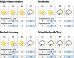 Der Samstag beginnt nach rascher Auflösung von Frühnebelfeldern meist sonnig bei etwas böigem Ostwind. Im Verlaufe des Tages bilden bilden sich zunehmend Quellwolken und vereinzelt Wärmegewitter. Die Temperaturen steigen bis 29 °C im Rheintal, 27 °C im Mittleren Neckarraum und 24 °C auf der Alb. Der Sonntag beginnt meist sonnig bei bis zu 30 °C im Rheintal und 24 °C auf der Alb. Tagsüber bilden sich vor allem in Hochlagen heftige Gewitter. Am Montag hebt die Sonne die Temperaturen bis 31 °C im Rheintal und 25 °C auf der Alb. Tagsüber bilden sich verbreitet Gewitter. Am Dienstag fallen weitere teils gewittrige Schauer, bei maximal 29 °C im Rheintal, 26 °C im Mittleren Neckarraum und 21 °C auf der Alb. Die weiteren Tage bleiben sommerlich...