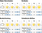 Am Samstag lösen sich die Wolkenfelder bis mittags meist auf, bei auffrischendem Nordwind steigen die Temperaturen bis 27 °C im nördlichen Rheintal, 25 °C im mittleren Neckarraum und am Bodensee sowie 20 °C auf der Alb und es bilden sich Quellwolken. Nachts halten sich die Temperaturen meist über 15 °C, in Hochlagen meist über 10 °C. Am Sonntag und Montag wird es sonnig und wärmer bei mässig-böigem Ostwind und tagsüber bilden sich Quellwolken. Am Dienstag steigen die Temperaturen in den Ebenen teils bis 30 °C, auf der Alb bis 23 °C. Nachmittags bilden sich verbreitet Quellwolken. Die Folgetage werden ebenfalls sonnig und warm. | →Mehr Agrarwetter unter www.bwagrar.de. →Wetter nach Hause gibt es auch im Wetterfax unter...