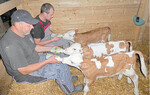 Große Freude herrscht auf dem Betrieb Kilian in Satteldorf-Volkershausen: Milchkuh Franzi hat gleich dreifaches Mutterglück ereilt. Zwei Jungs und ein Mädel, brachte die Kuh Mitte Juni zur Welt. Betriebsleiter Karl-Georg Kilian (vorne) und Sohn Florian haben jetzt alle Hände voll zu tun. Die Geburt verlief zum Glück ohne Komplikationen und die jungen Kälber sind wohlauf und putzmunter.