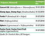 Das Bundesamt für Verbraucherschutz und Lebensmittelsicherheit hat die Zulassung von Pflanzenschutzmitteln, deren Zulassung durch Zeitablauf endete, verlängert. Diese gelten bis zur endgültigen Entscheidung über eine erneute Zulassung.