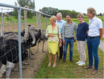 Auf einen Sprung kam Mitte August Staatssekretärin Friedlinde Gurr-Hirsch (l.) auf der Straßenfarm in Waldburg vorbei. Betriebsleiter Wolfgang Schmid (3. v. l.) zeigte den politischen Vertretern in einer zweistündigen Führung den gesamten Betrieb – von den Brutanlagen und der Kükenaufzucht über die Stallungen bis hin zur hofeigenen Metzgerei. Mit im Bild sind Maria Blaseg, CDU, sowie Waldburgs Bürgermeister Michael Röger.