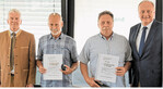 Verdiente Rübenanbauer wurden bei der Mitgliederversammlung des Verbandes baden-württembergischer Zuckerrübenanbauer (VbwZ) am Dienstag für ihr langjähriges ehrenamtliches Engagement um die Anliegen des Zuckerrübenanbaus ausgezeichnet. Die Ehrung nahmen Vorsitzender Joachim Rukwied (rechts) und Geschäftsführer Harald Wetzler (links) in der Genossenschaftskellerei Heilbronn vor. Karl Bär (2. von rechts) aus Weinheim (Rhein-Neckar-Kreis) wurde für 25-jährige ehrenamtliche Tätigkeit als Vertrauensmann ausgezeichnet. Rukwied heftete ihm die Ehrennadel in Silber des Verbandes ans Revers. Friedrich Frenz (2. von links) aus Ilshofen (Landkreis Schwäbisch Hall) und Manfred Läpple aus Ilsfeld (Landkreis Heilbronn) erhielten die Ehrennadel in...