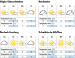 Am Samstag halten sich die Nebelfelder in den Ebenen länger, in höheren Lagen scheint die Sonne, bei mäßig-frischem Nordostwind und Maxima um 18 °C im Rheintal, im Neckarraum und 15 °C auf der Alb. Der Sonntag beginnt gebietsweise mit Bodenfrost, bei klarem Himmel und Frühnebel über den Ebenen und im Umkreis von Seen. Im Tagesverlauf wird es sonnig, bei Temperaturen bis 18 °C im Rheintal, 17 °C im Neckarraum und 13 °C auf der Alb. Am Montag verändert sich das Wetter wenig und der Wind dreht auf Nord. Der Dienstag beginnt mit Nachtfrost bis in tiefere Lagen. Tagsüber nimmt die Bewölkung und die Schauerneigung von Norden her zu bei maximal 13 °C in den Ebenen und 9 °C auf der Alb. Die Folgetage werden voraussichtlich eher bewölkt bei...