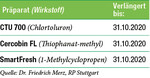 Das Bundesamt für Verbraucherschutz und Lebensmittelsicherheit hat die Zulassung von Pflanzenschutzmitteln, deren Zulassung durch Zeitablauf endete, verlängert. Diese Zulassungsverlängerungen werden bis zur endgültigen Entscheidung über eine erneute Zulassung erteilt.