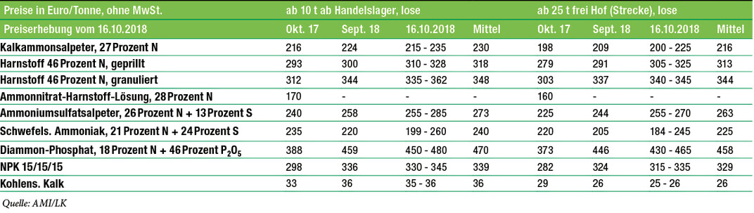 Einkaufspreise der Landwirte für Düngemittel in Süddeutschland